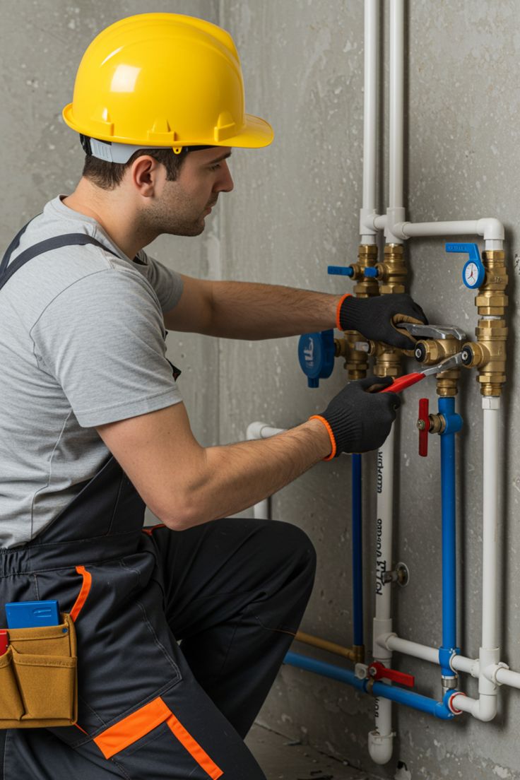 Professional plumbing skills including pipe fitting, drainage systems.